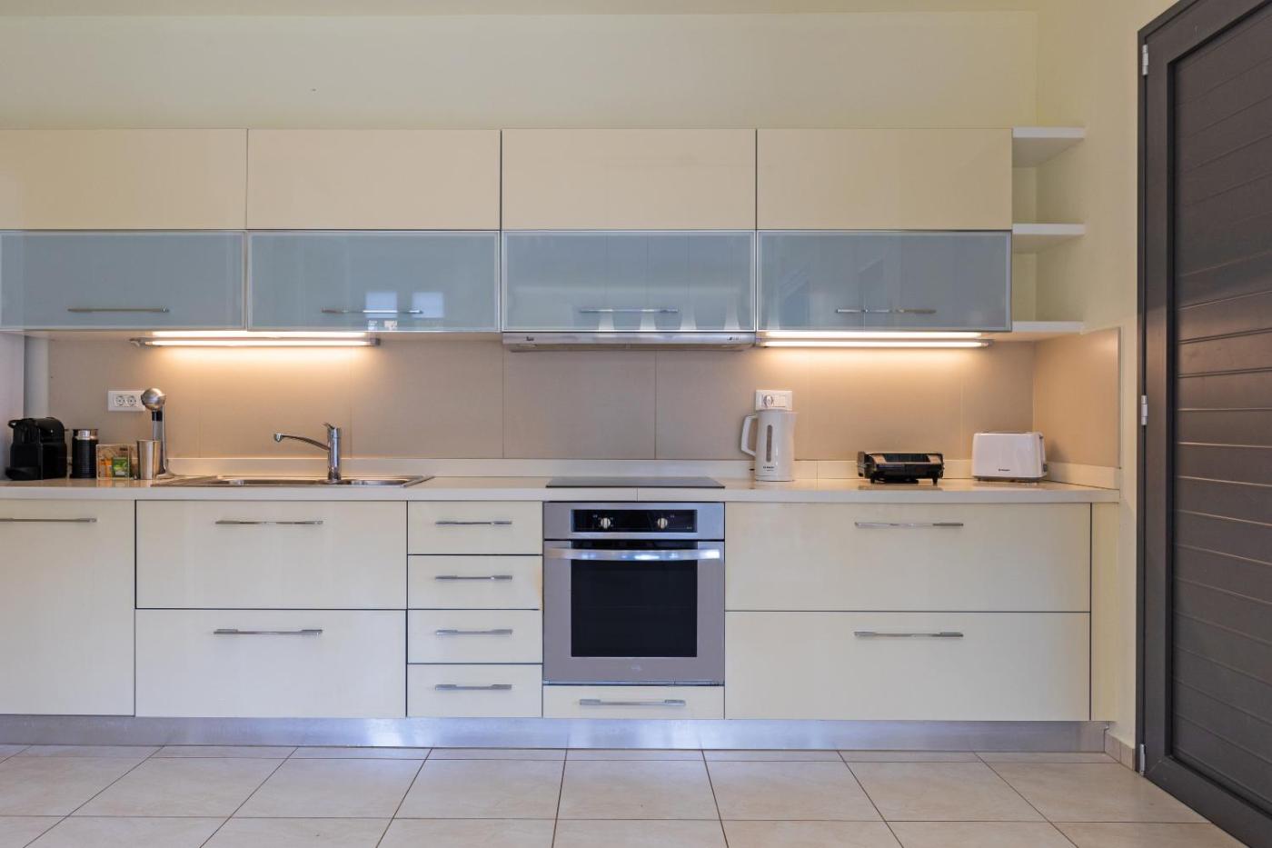 Two-Bedroom House. Featuring a private entrance, this air-conditioned holiday home consists of 1 living room, 2 separate bedrooms and 3 bathrooms with a bath and a shower. The well-equipped kitchen features a stovetop, a refrigerator, a dishwasher and kitchenware. Boasting a terrace with garden views, this holiday home also provides a washing machine and a flat-screen TV. The unit offers 5 beds.