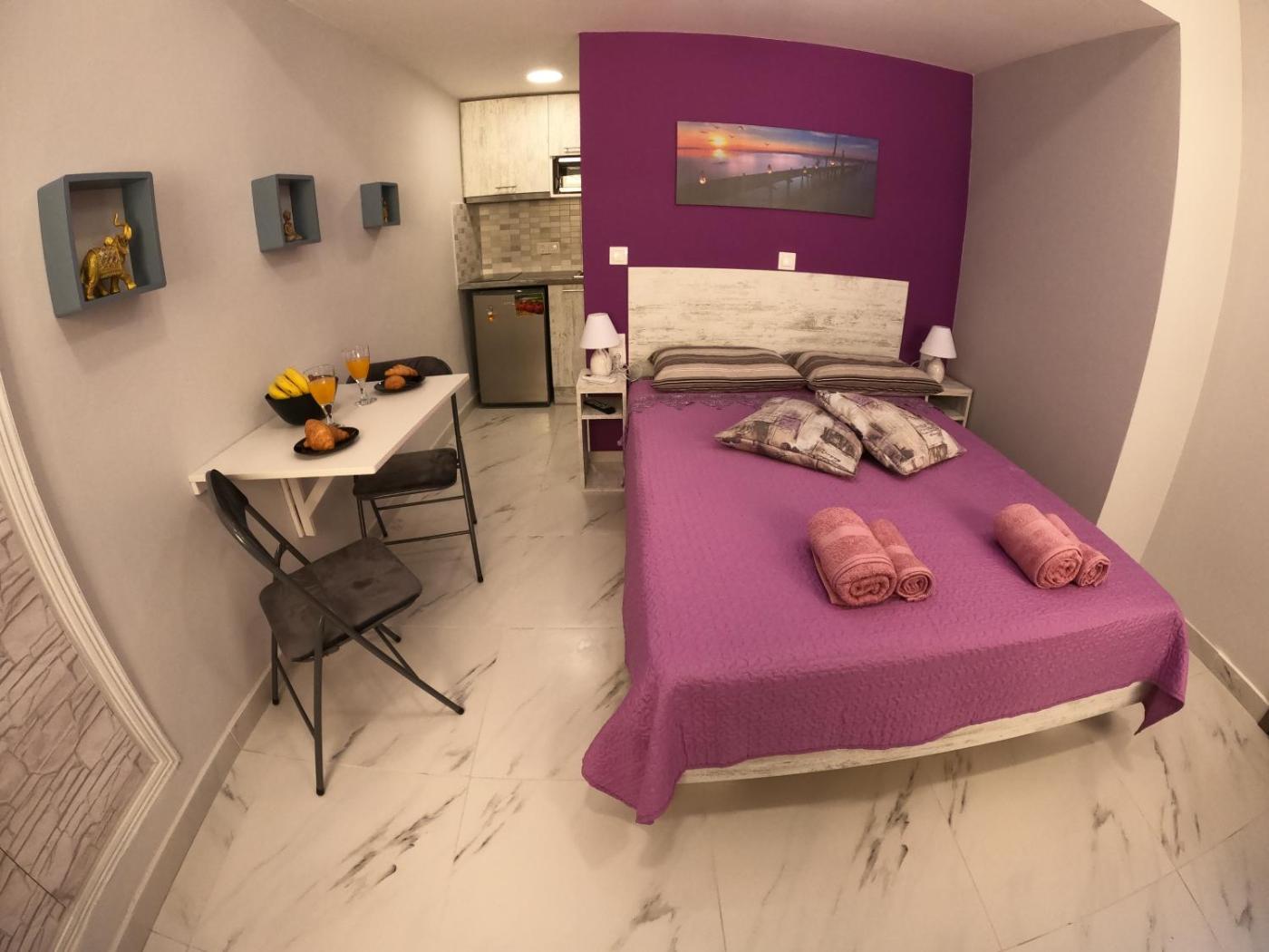 One-Bedroom Apartment. The air-conditioned apartment has 1 bedroom and 1 bathroom with a walk-in shower and a bath or a shower. In the fully equipped kitchenette, guests will find a stovetop, a refrigerator, kitchenware and a microwave. The apartment offers a wardrobe, an electric kettle, a tiled floor, a flat-screen TV, as well as a quiet street view. The unit has 1 bed.