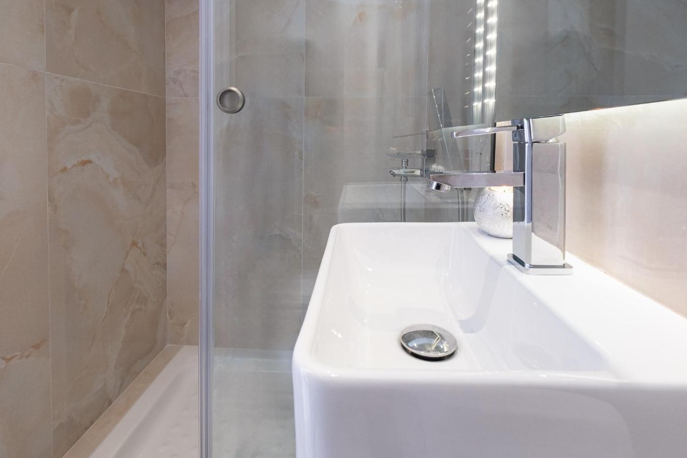Deluxe Apartment. Boasting a private entrance, this air-conditioned apartment includes 1 living room, 1 separate bedroom and 1 bathroom with a walk-in shower and a hairdryer. Meals can be prepared in the kitchen, which is fitted with a stovetop, a refrigerator, kitchenware and an oven. This apartment has a washing machine, a tea and coffee maker, flat-screen TV, as well as chocolate for guests. The unit has 1 bed.