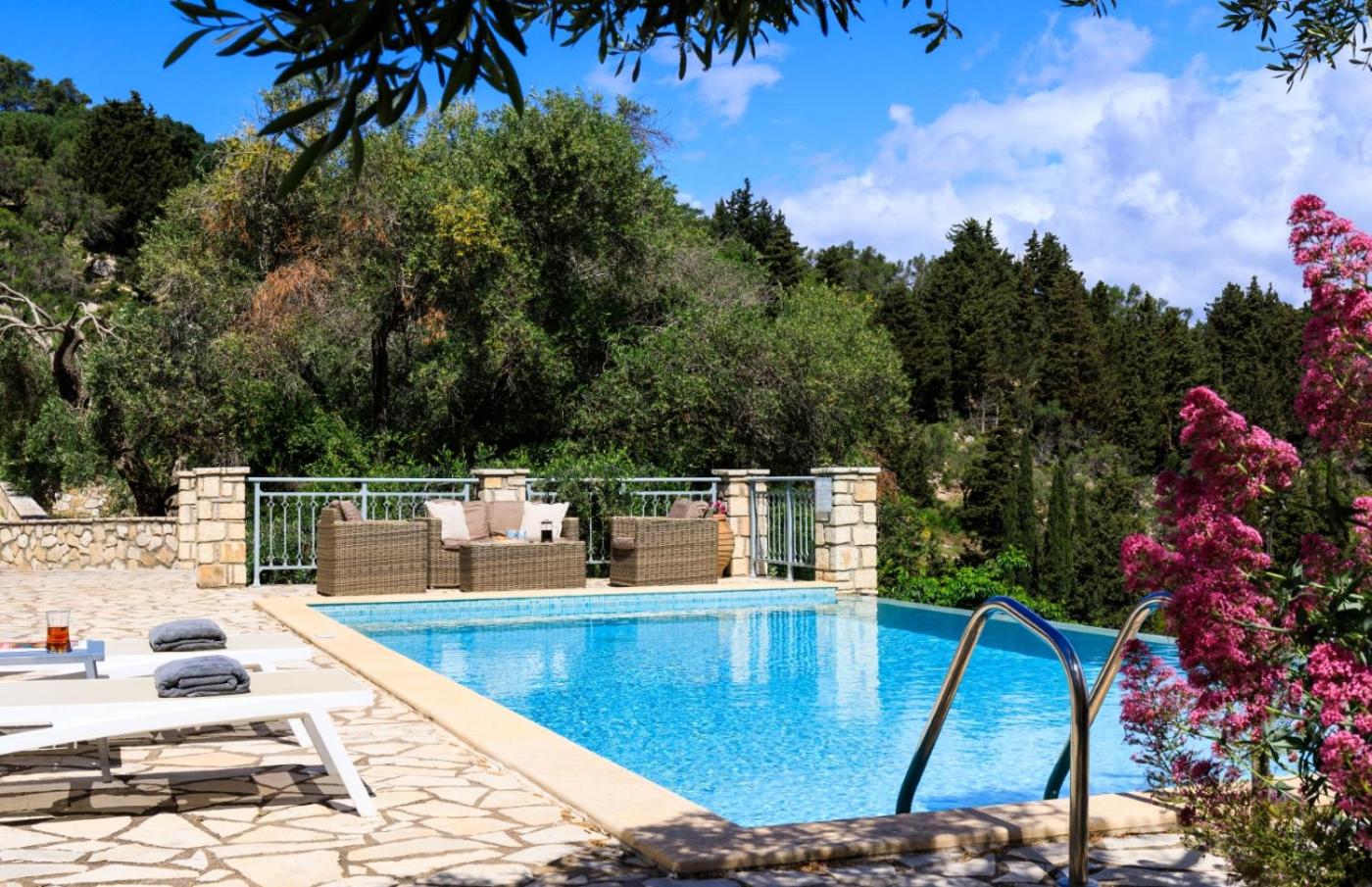 Guests can enjoy the outdoor swimming pool and garden at the villa.