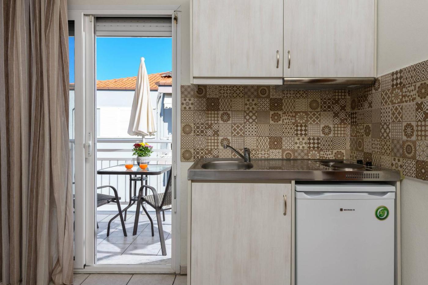Economy Double Room. The double room features air conditioning, a minibar, as well as a private bathroom boasting a bath and a shower. In the well-equipped kitchenette, guests will find a stovetop, kitchenware, a toaster and an electric kettle. This double room has a wardrobe, a safe deposit box, a flat-screen TV and a balcony. The unit has 1 bed.