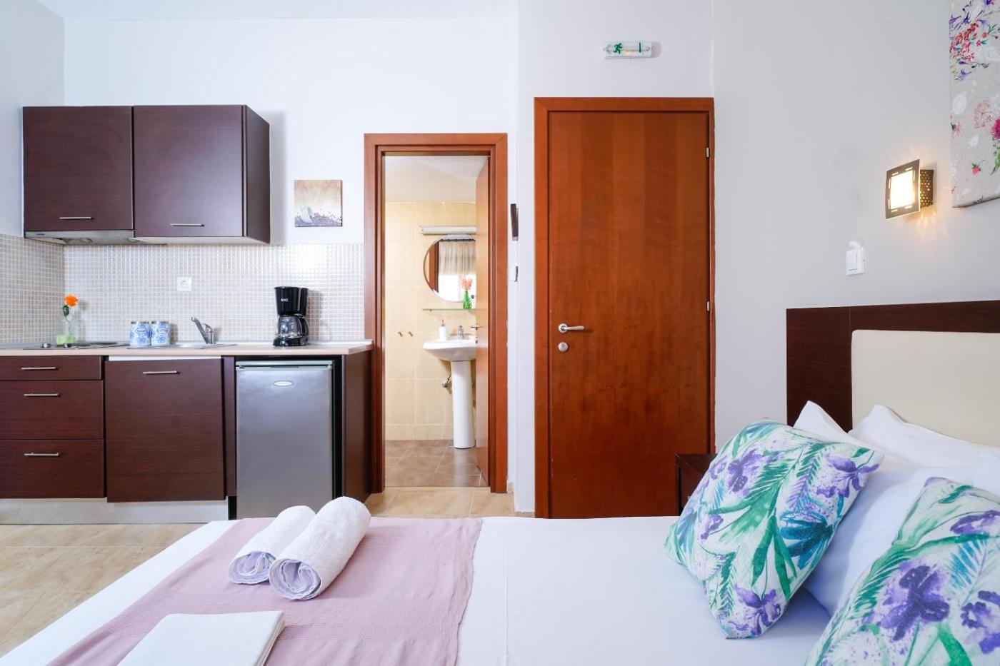 Family Studio. The studios kitchenette, which features a refrigerator and kitchenware, is available for cooking and storing food. This air-conditioned studio has a private bathroom, a tea and coffee maker, a seating area as well as a terrace. The unit has 3 beds. ;