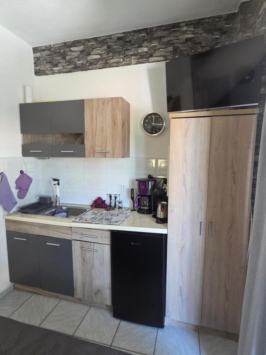 One-Bedroom Apartment. The air-conditioned apartment features 1 bedroom and 1 bathroom with a bath or a shower and a hairdryer. The kitchen is equipped with a stovetop, a refrigerator and kitchenware. Featuring a terrace with garden views, this apartment also provides a tea and coffee maker and a flat-screen TV with cable channels. The unit offers 1 bed.